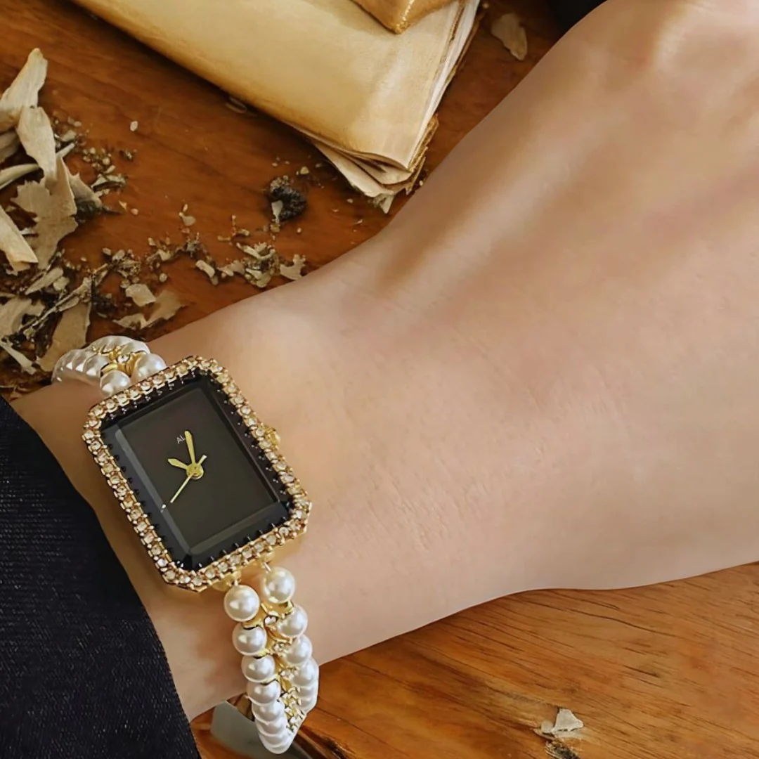 Timeless charm meets contemporary sophistication in the Celine Pearl Bracelet Watch. With its refined rectangular dial and luminous pearl accent, this piece embodies effortless elegance, perfect for day-to-night wear.